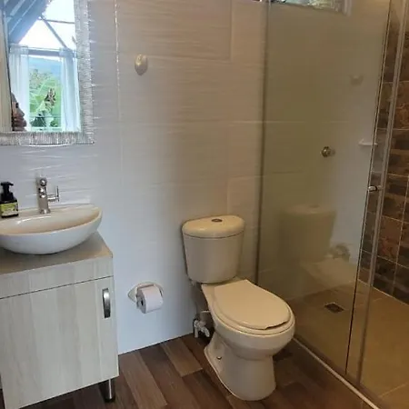 Bathroom facilities at the Moniquira farm stay also include a separate toilet and a shower. Bath sheets are included to enhance your comfort.